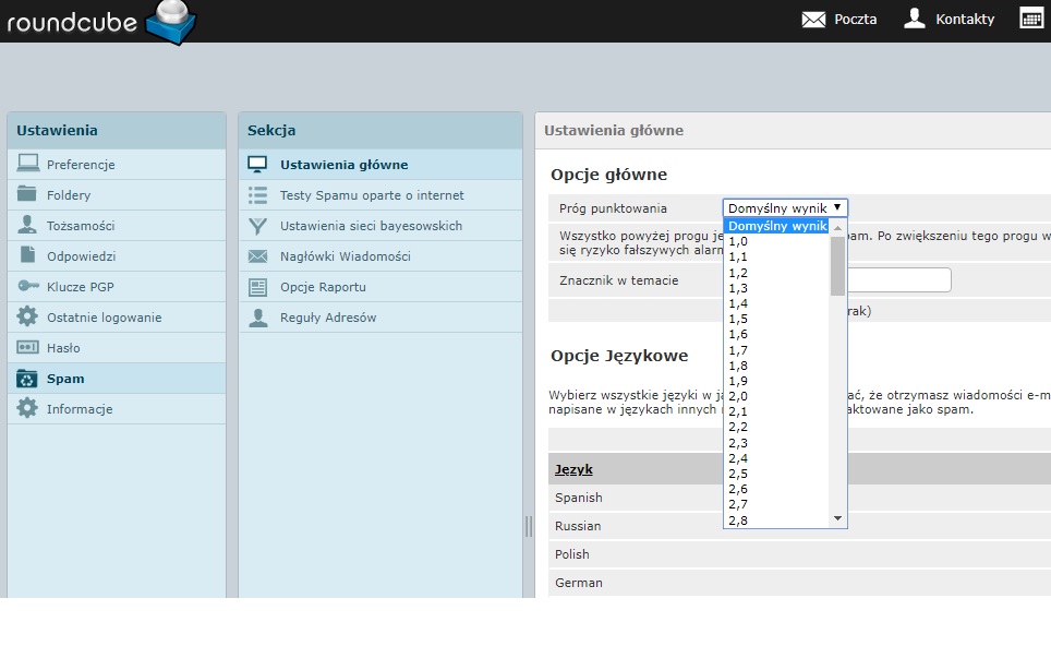 Na serwerze funkcjonuje również mechanizm uczenia filtra (Bayes). Jeśli chcesz nauczyć filtr poprawnego rozpoznawania spamu w swojej poczcie wykonaj następujące czynności:
